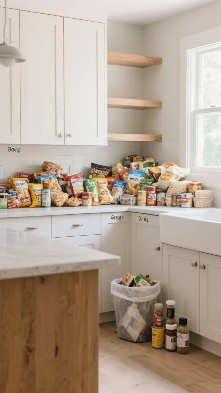- Bonus: Use category labels on shelves—Baking, Breakfast, Snacks, Cans.