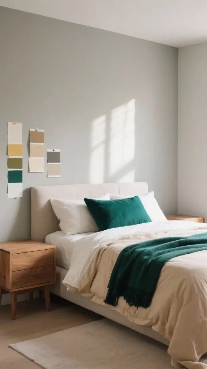 Your color palette sets the mood. Soft neutrals and muted tones = calm vibes. Bold jewel tones = drama and personality. Pick 2–3 main colors and one accent so your room doesn’t turn into a rainbow explosion.