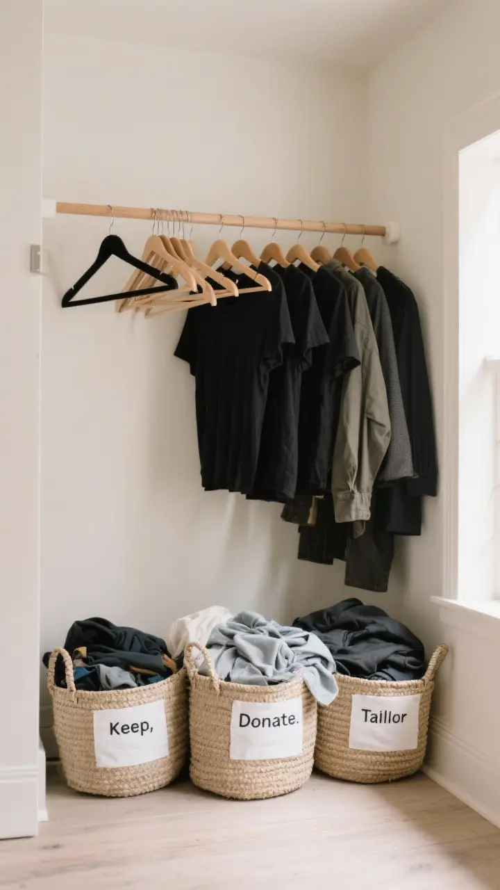 Before you add a single organizer, edit. If it doesn’t fit, flatter, or get worn, it’s just taking up precious hanger real estate. Be brutal—but kind to Future You.