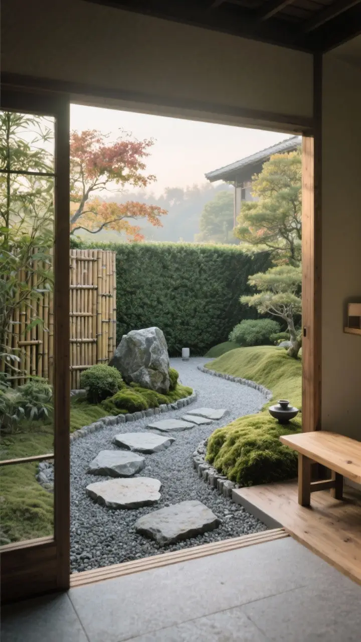 - Bamboo elements: Short fences, screens, or a shishi-odoshi (deer chaser) if you love that soft, rhythmic clack.